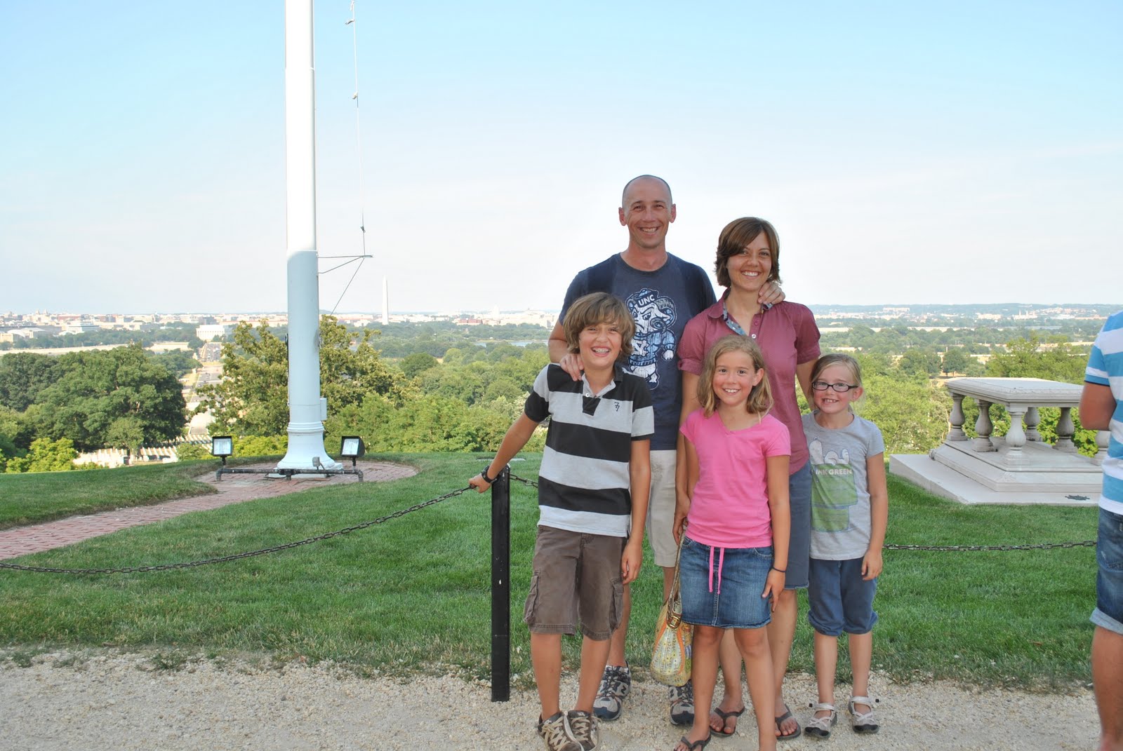 Then we took the metro and walked through Arlington Cemetery. Riley was so happy. Here we are at the top of a hill where one of the Generals had his house. Right before Christina took the picture, a very slow man walked right between us. She was even counting loudly, "ONE, TWO...", but he just walked right on by. We finally got a photo of Adam smiling! It was pretty funny.